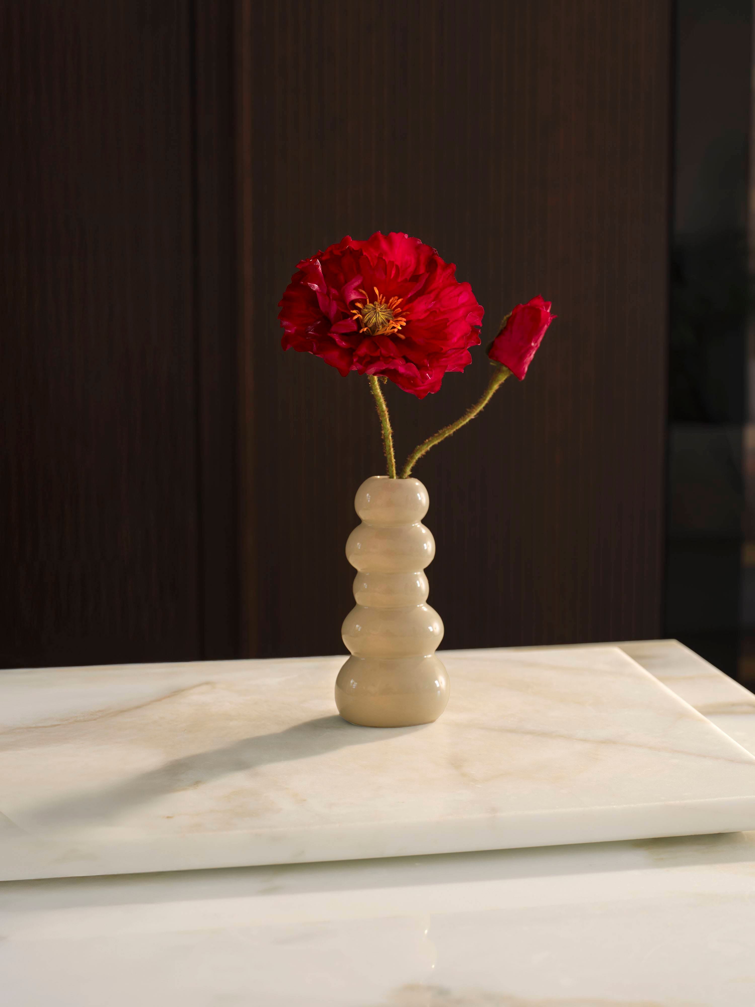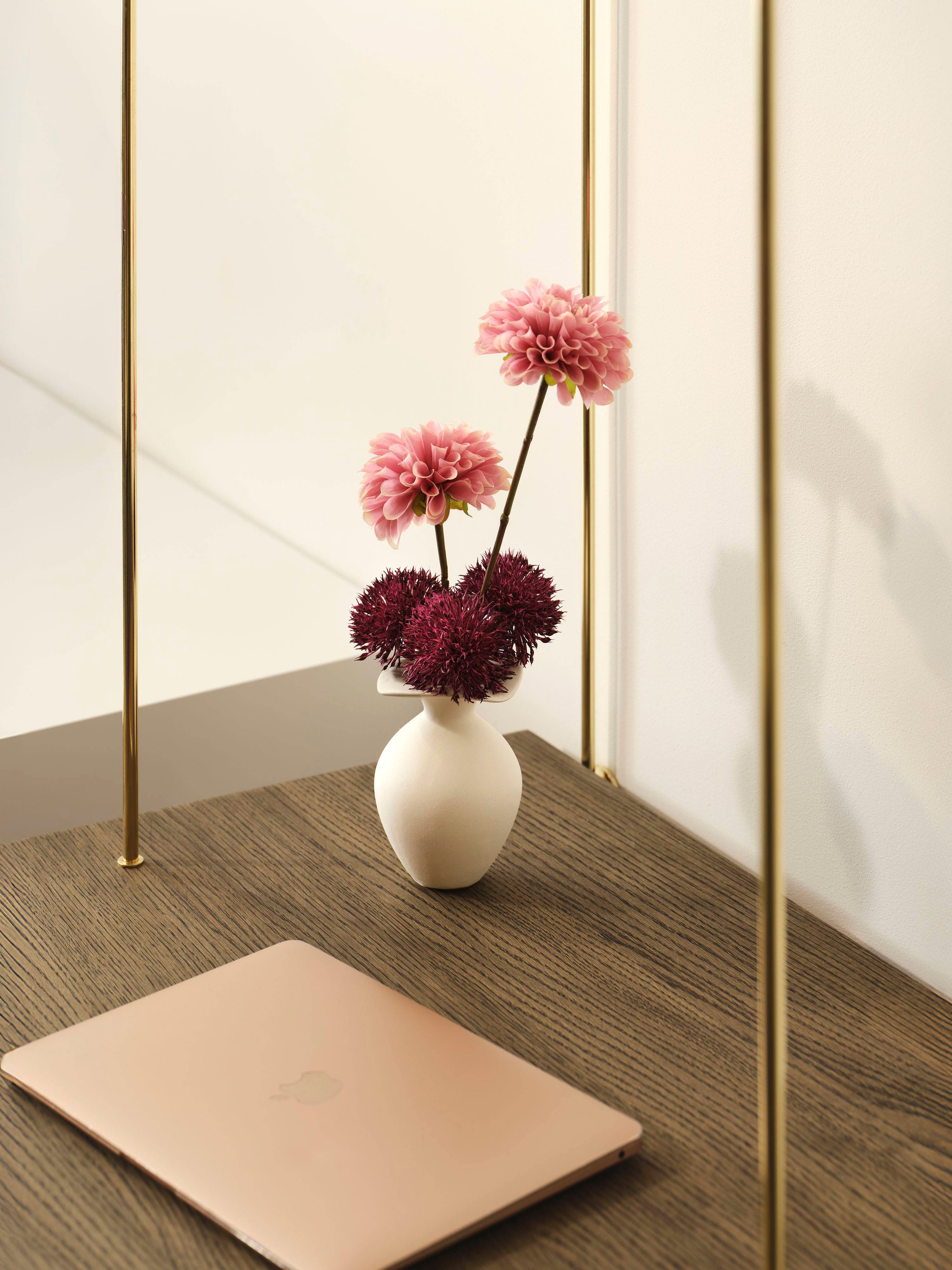 This elegant silk flower in an organic mini vase makes the perfect table accent — a refined token of appreciation for colleagues or clients. All gifts can be personalized with your logo, brand colors, or a meaningful detail.