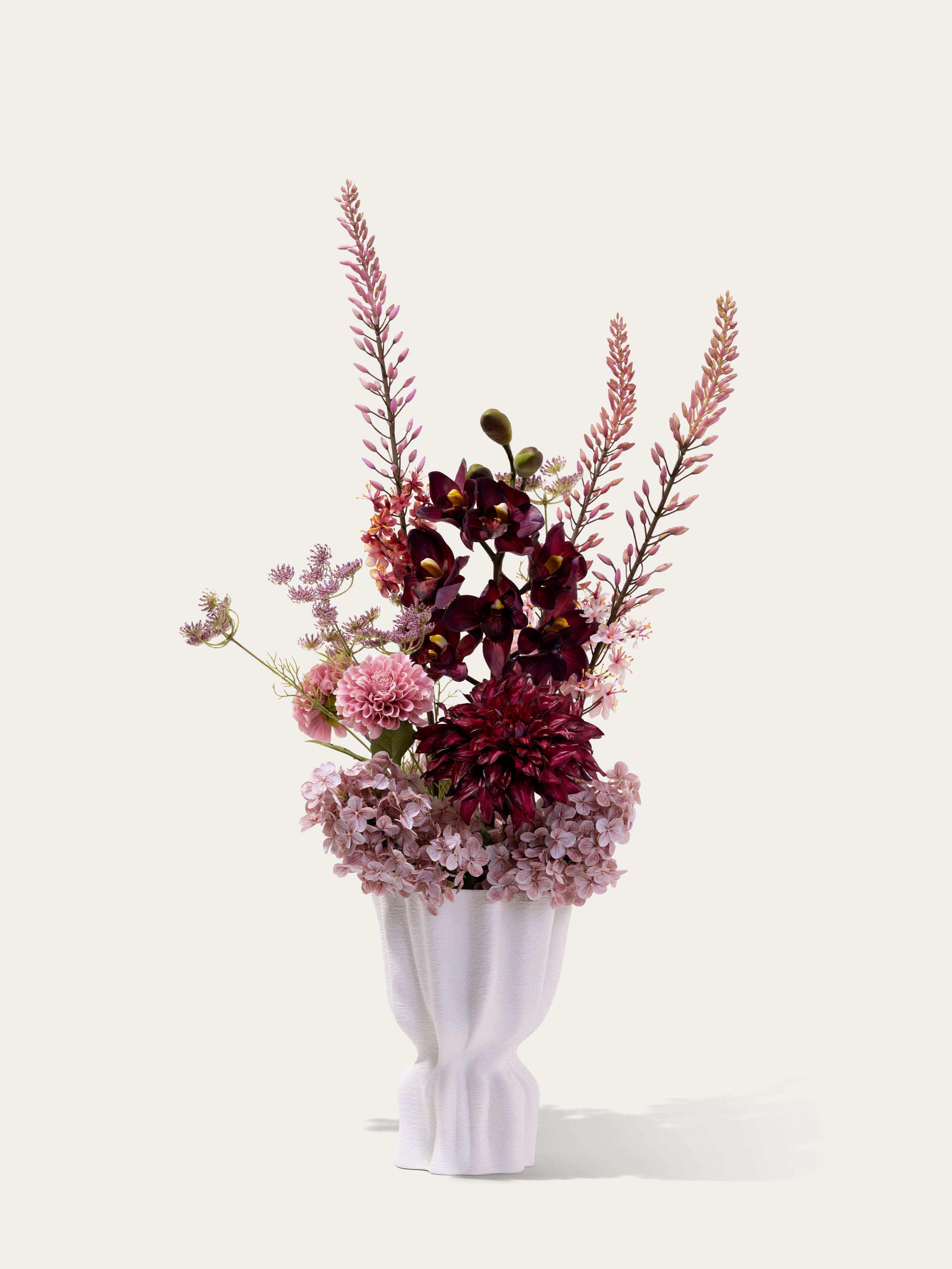 The highest quality silk flower bouquets can be found at Bloom & Wolf. We source only the finest flowers, and our bouquets and bouquet-vase combinations are arranged by our master florist.