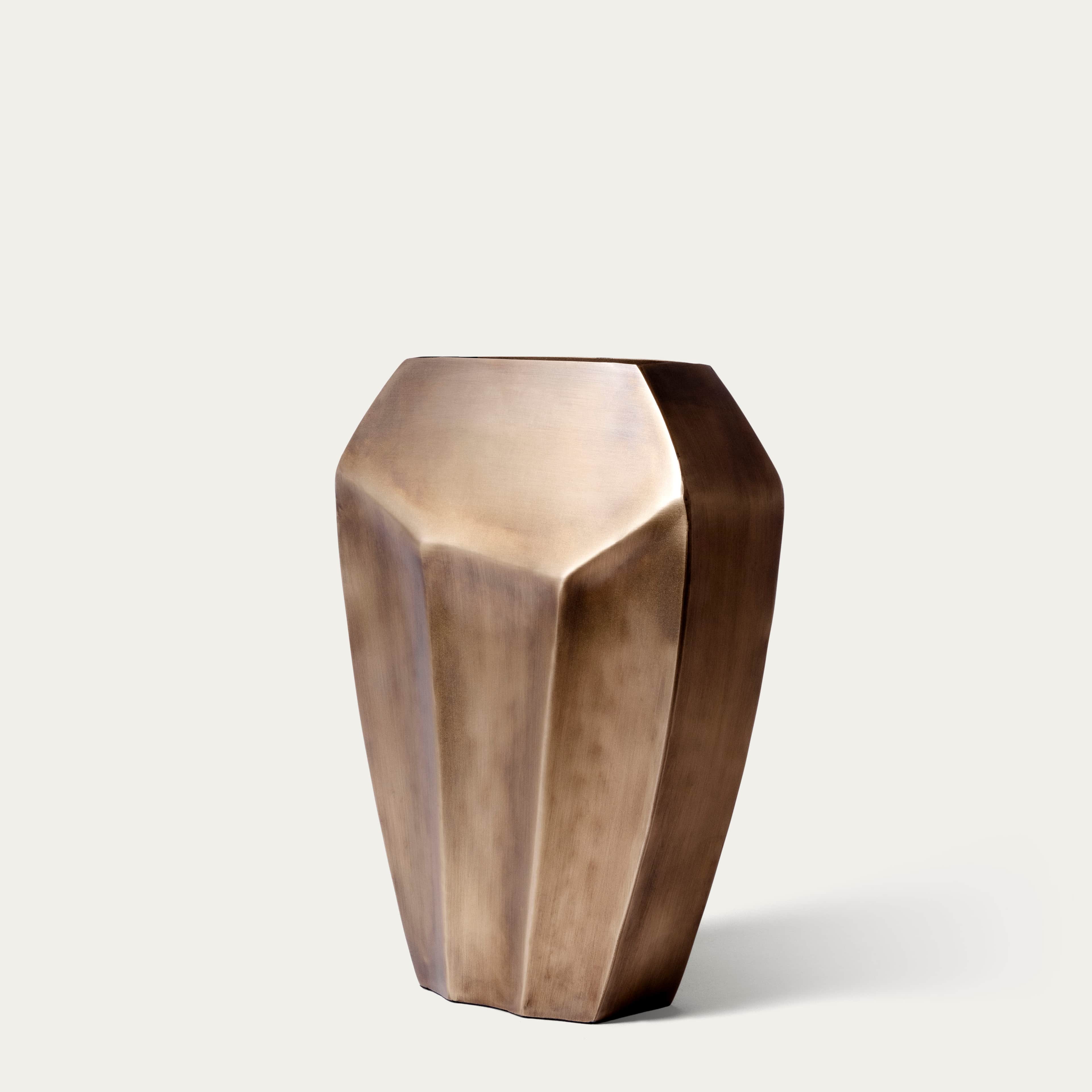 A statement piece in metallic gold, shaped like a shield. Bold, modern, and instantly eye-catching.