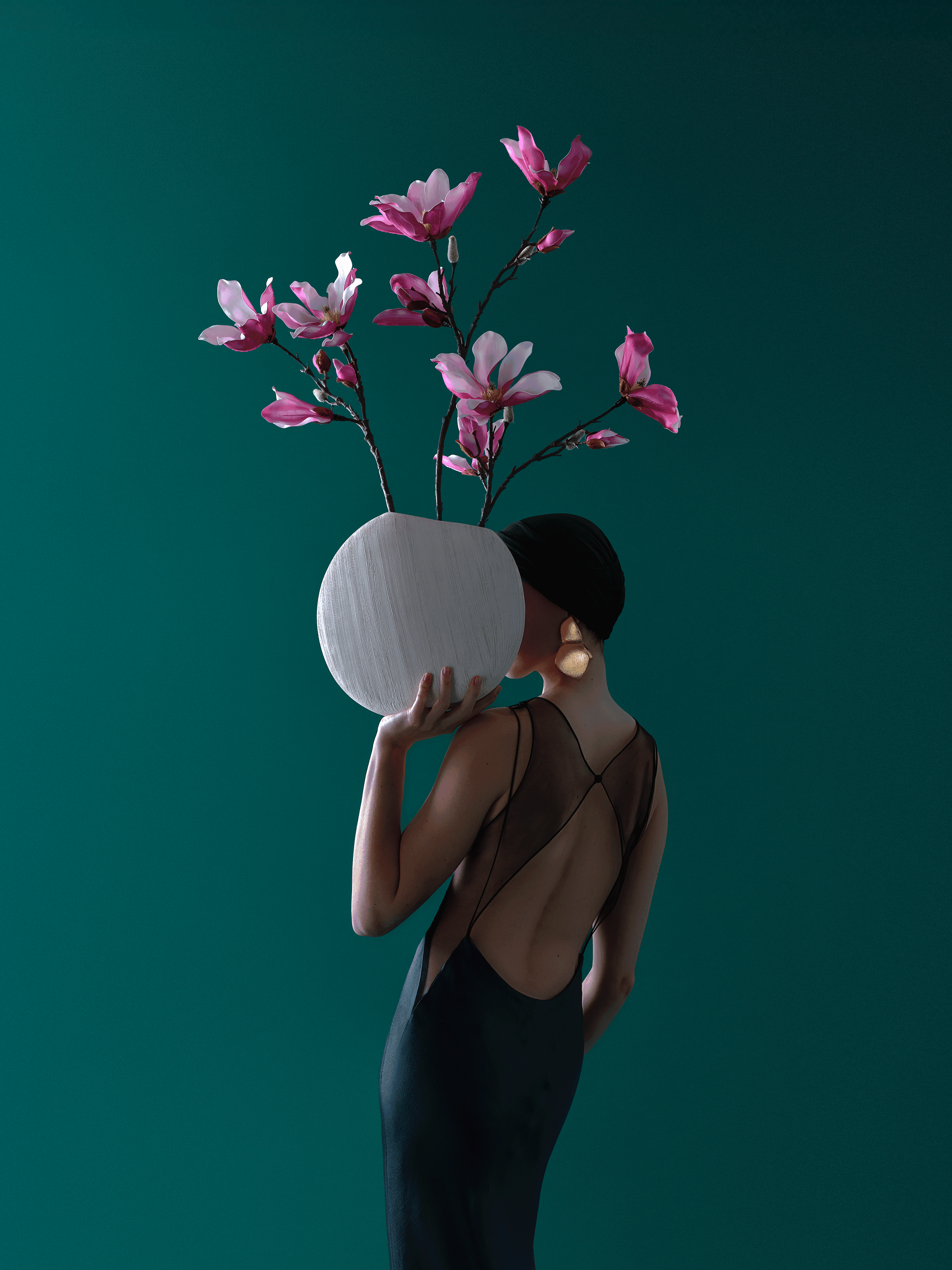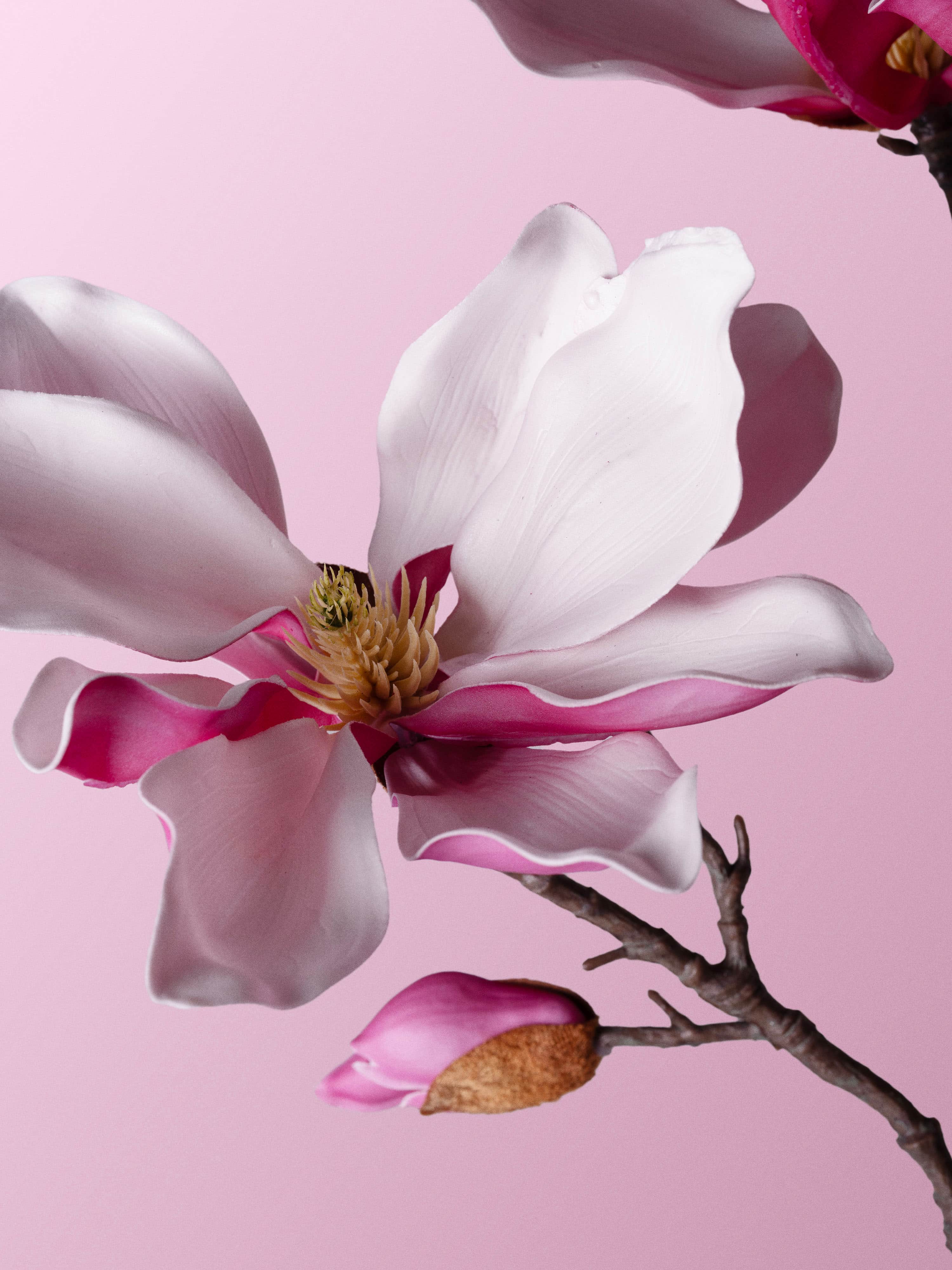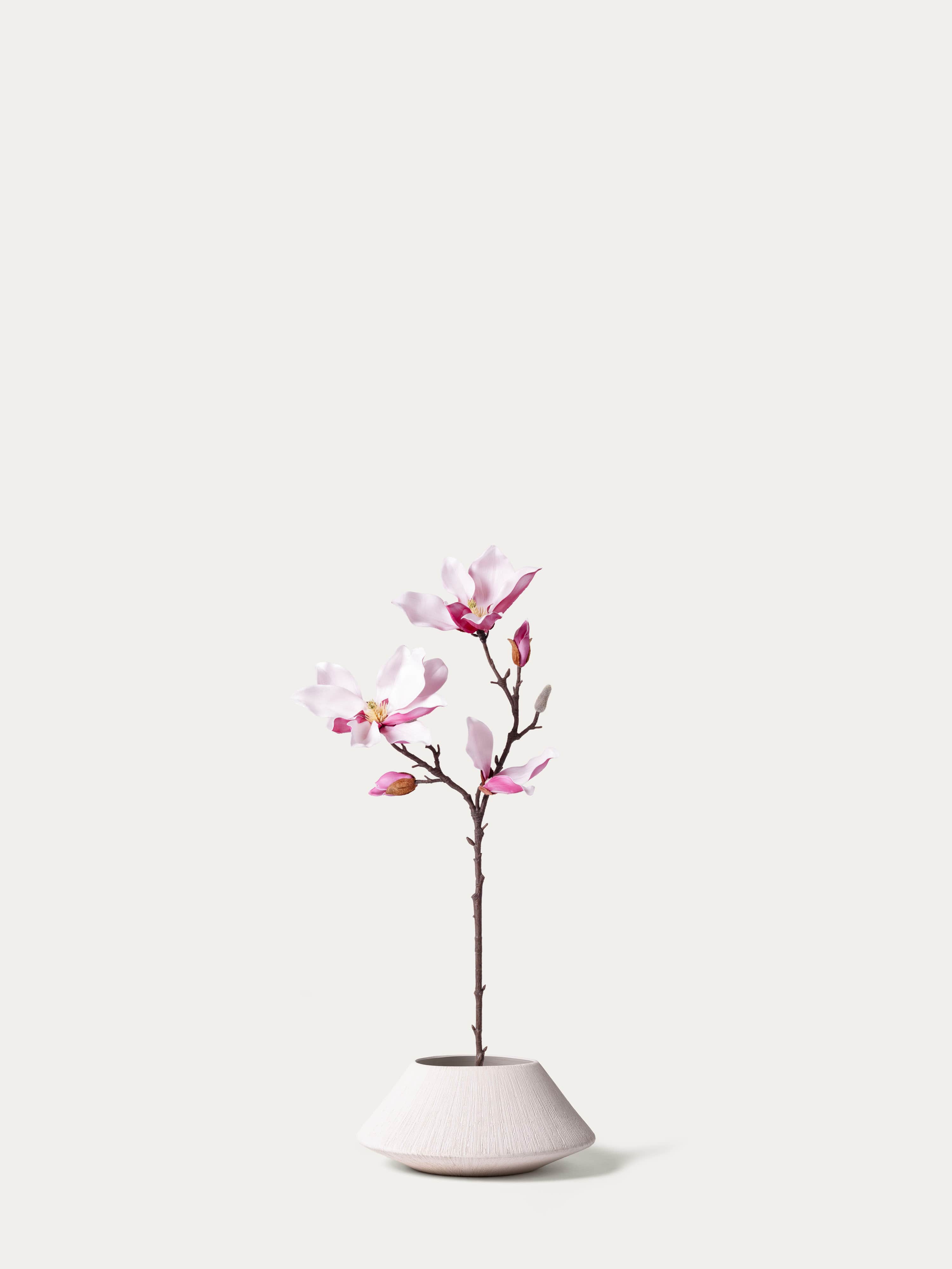 This refined magnolia bouquet forms a graceful composition with its round, softly flattened vase. This bouquet comes with our complimentary floral perfume.