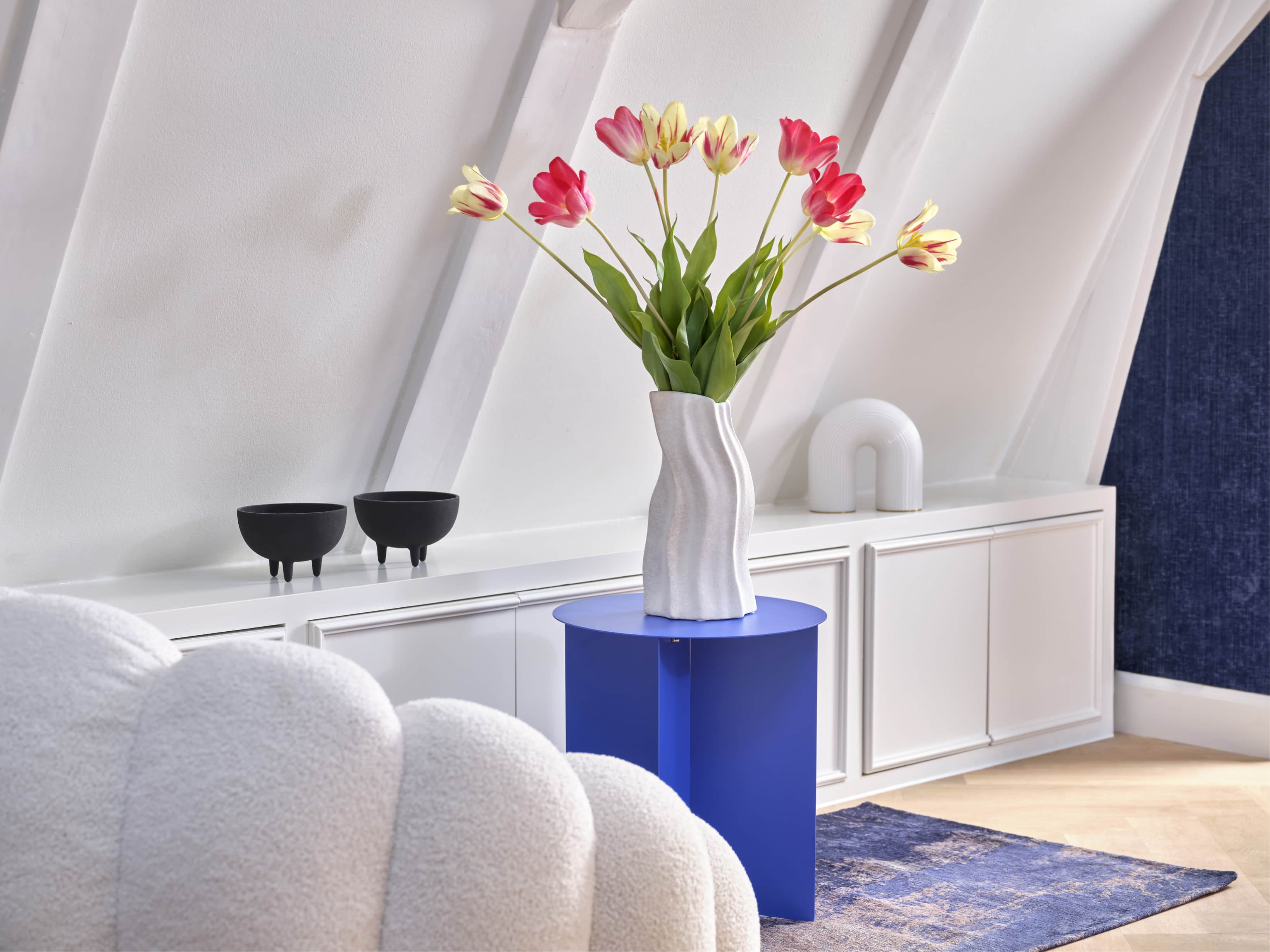 Dit boeket is een referentie naar de speelsheid en ondeugende charme van Camille Henrot's sculpturen. Bloemen die net zo levendig zijn als haar kunst.