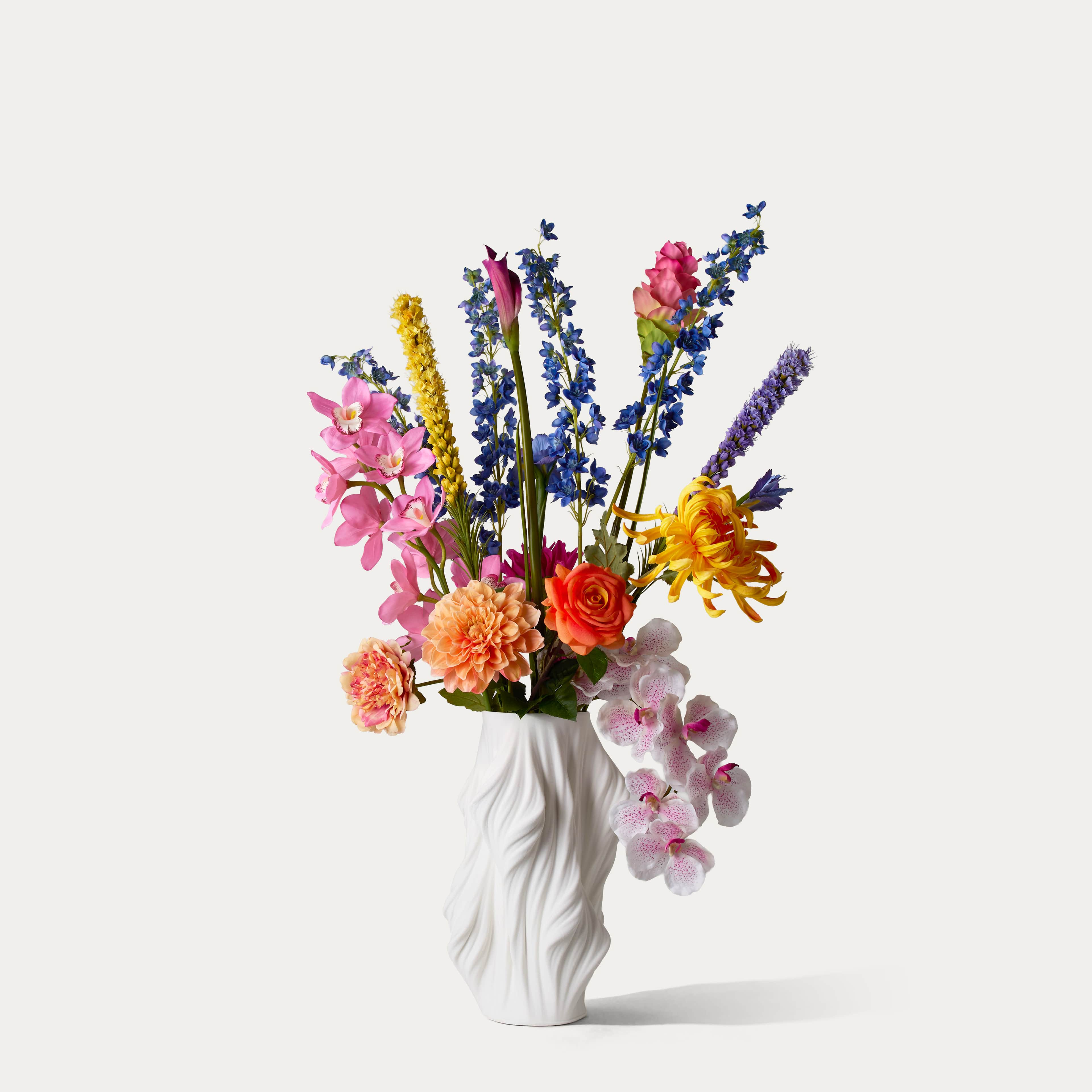 De hoogste kwaliteit zijdebloemenboeketten vind je bij Bloom & Wolf. Wij kopen enkel bloemen van de hoogste kwaliteit in en de boeketten en boeket-vaas combinaties worden samengesteld door onze meesterbloemist.
