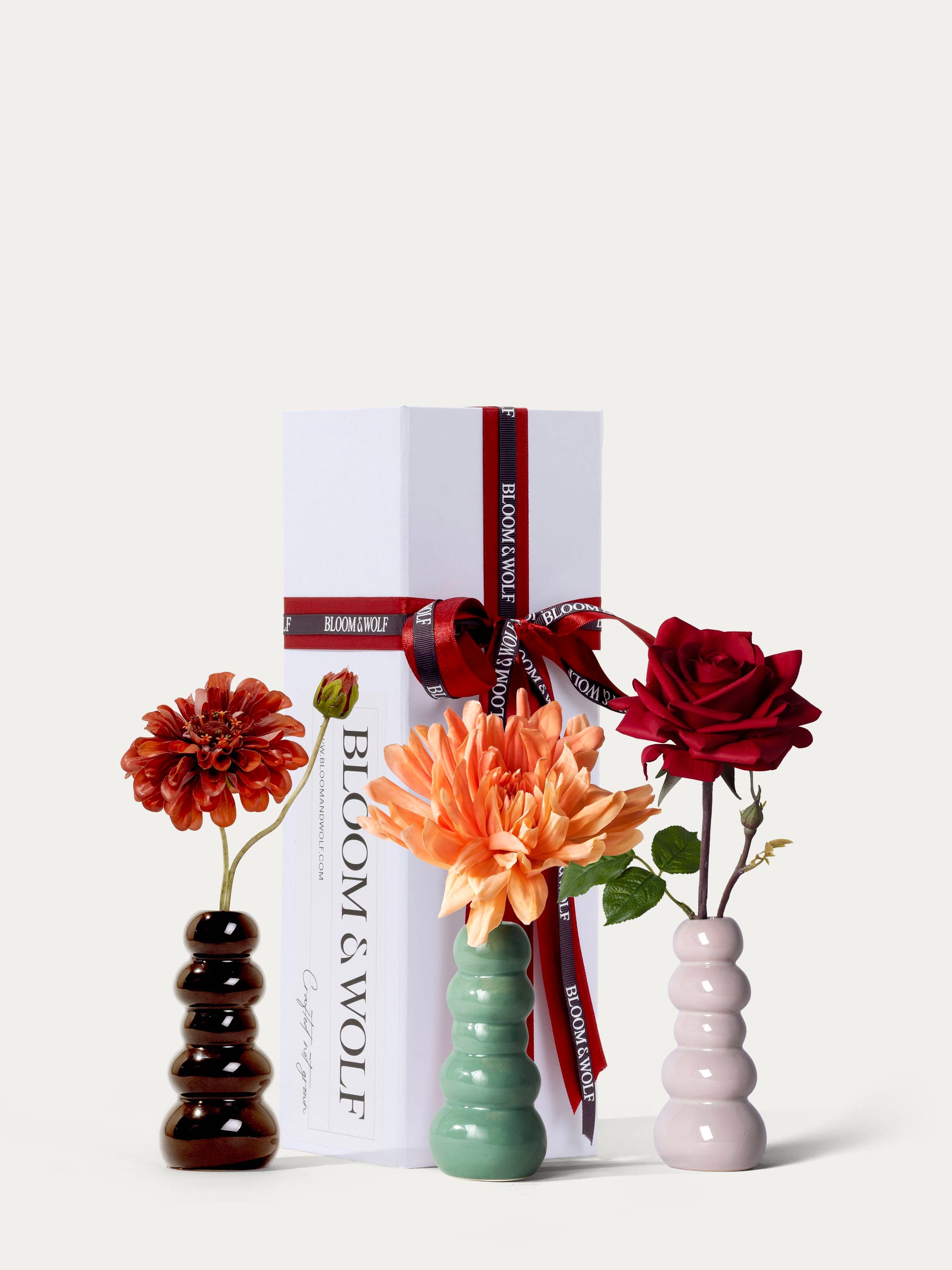 De hoogste kwaliteit zijdebloemenboeketten vind je bij Bloom & Wolf. Wij kopen enkel bloemen van de hoogste kwaliteit in en de boeketten en boeket-vaas combinaties worden samengesteld door onze meesterbloemist.